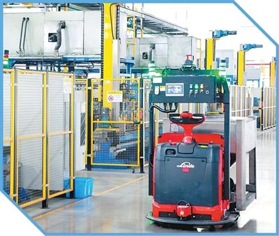 株硬集团粉末事业部的智能生产线上,自动导引车在进行无人化物料转运。何庆文摄(人民视觉)