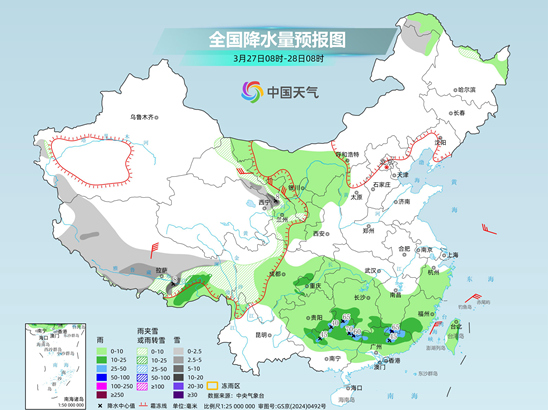 今明两天(3月27日至28日),南方仍将持续阴雨天气,较强降雨主要集中在广西、湖南、江西、福建等地。此外,北方的雨雪也将自西向东发展,明天华北、东北等地雨雪增多。气温方面,预计3月底到4月初,我国大部地区气温仍将以偏高为主,不过在江南、华北等地气温还会波动起伏。