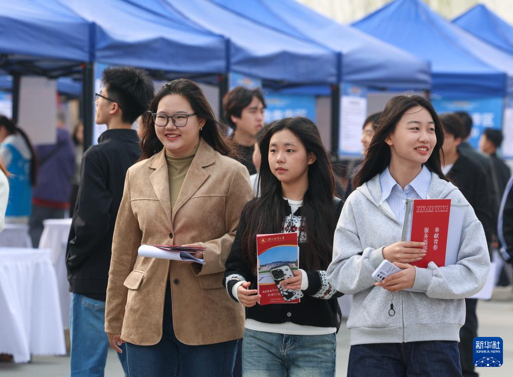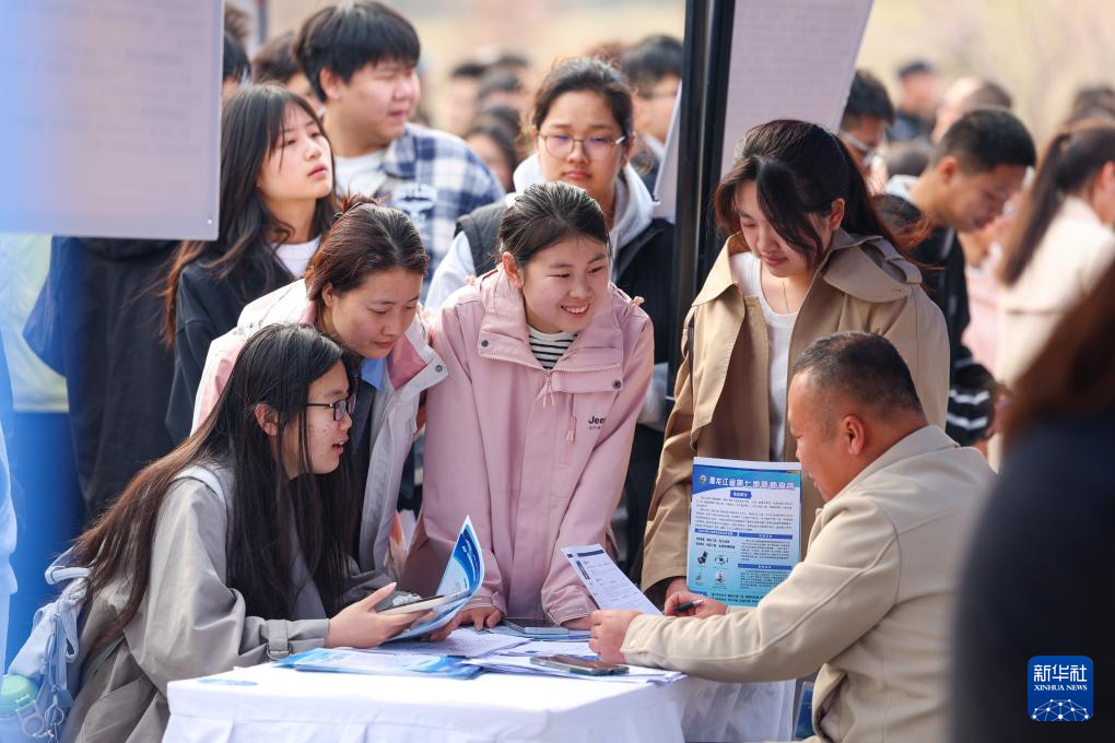 3月27日,求职者在河北地质大学专场招聘活动现场求职。