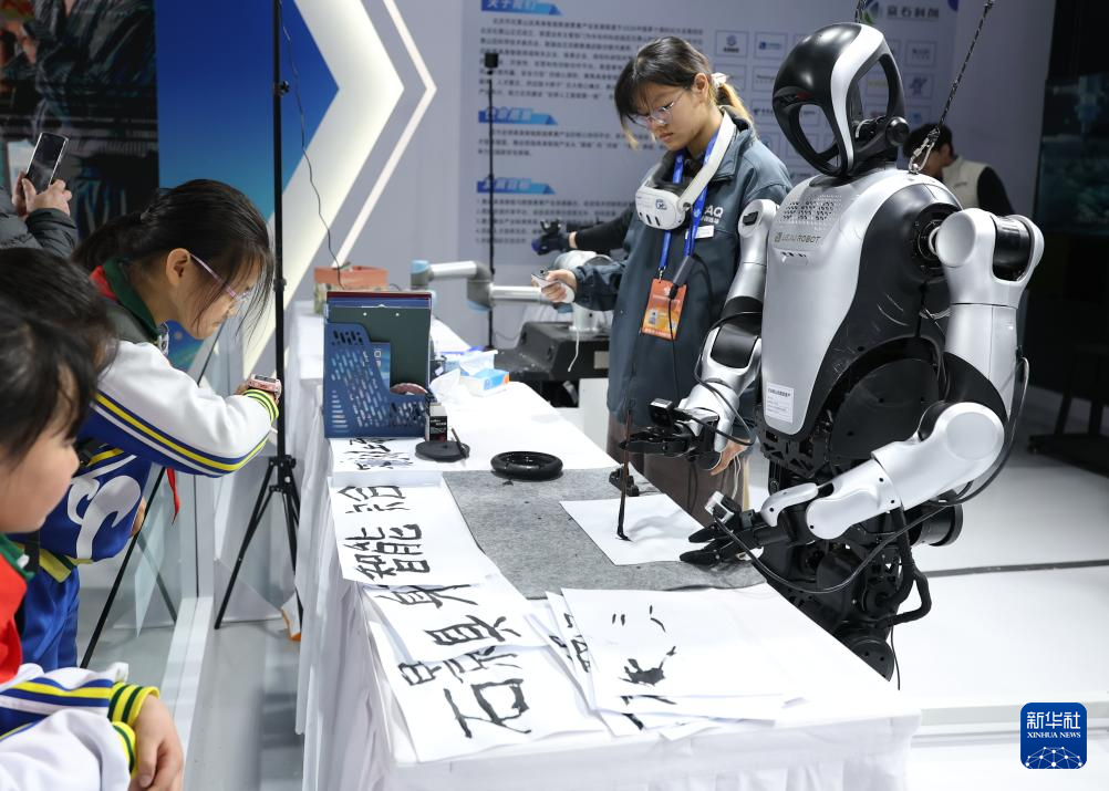 3月27日,在2026北京国际科幻与未来产业博览会现场,一款机器人在展示书写毛笔字。