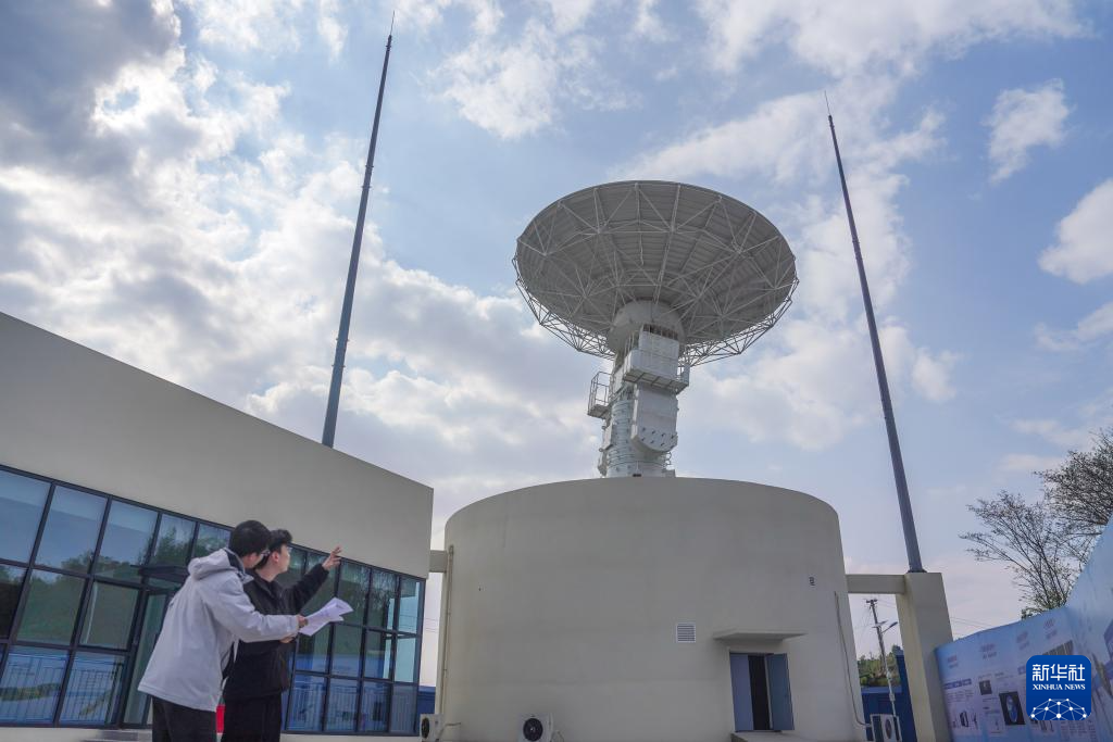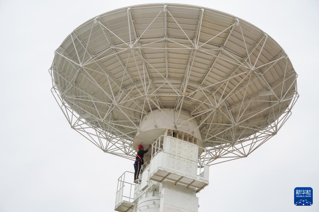 工作人员对环天星座卫星地面接收站主体进行现场验收(3月20日摄)。新华社发(翁光建摄)