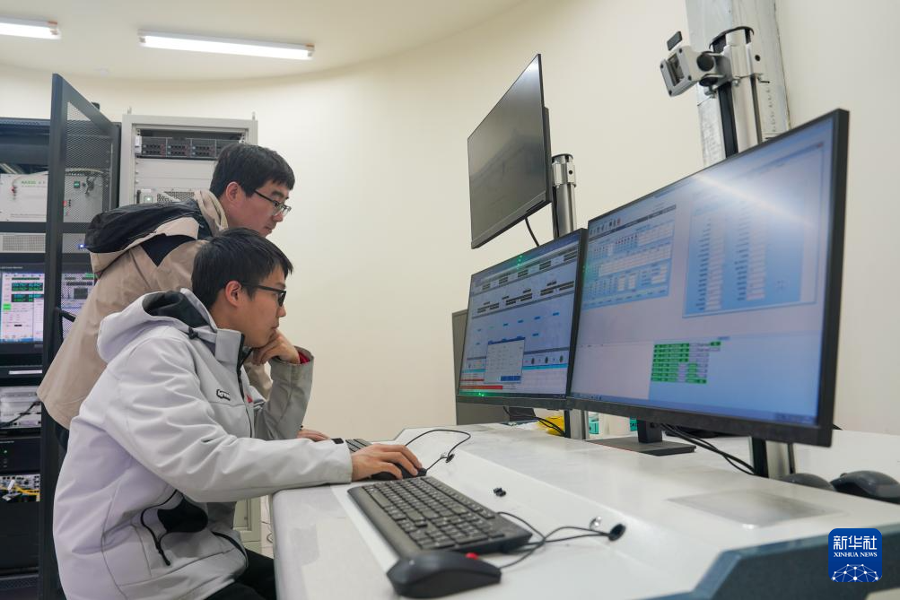 3月27日,技术人员对环天星座卫星地面接收站中心体进行设备调试。新华社发(翁光建摄)