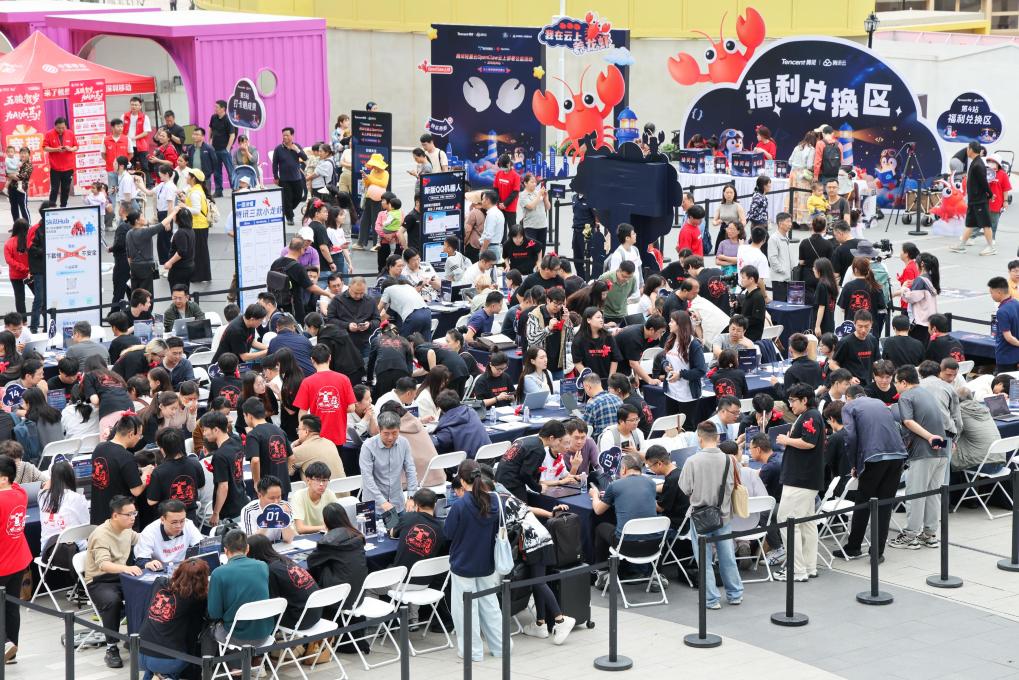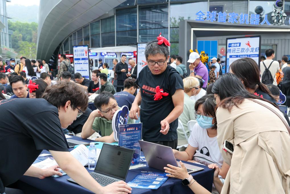 3月21日,人们在深圳市龙岗区机器人街区参加“腾讯轻量云OpenClaw云上部署公益活动”。