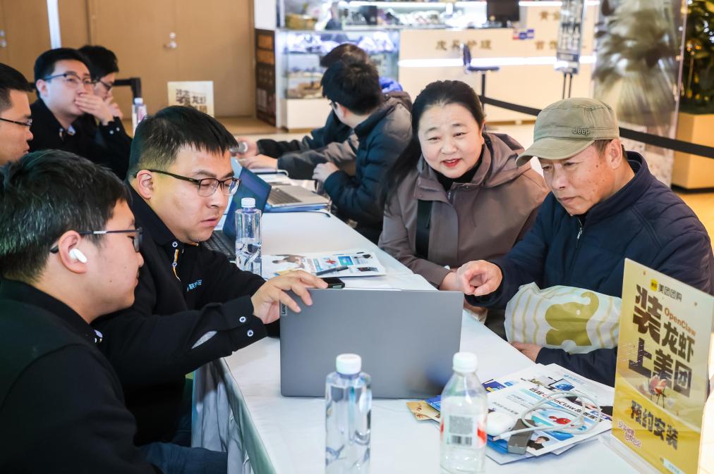 3月13日,在北京市一家商场内,对“龙虾”智能体感兴趣的市民在美团组织的安装“龙虾”活动上进行咨询。