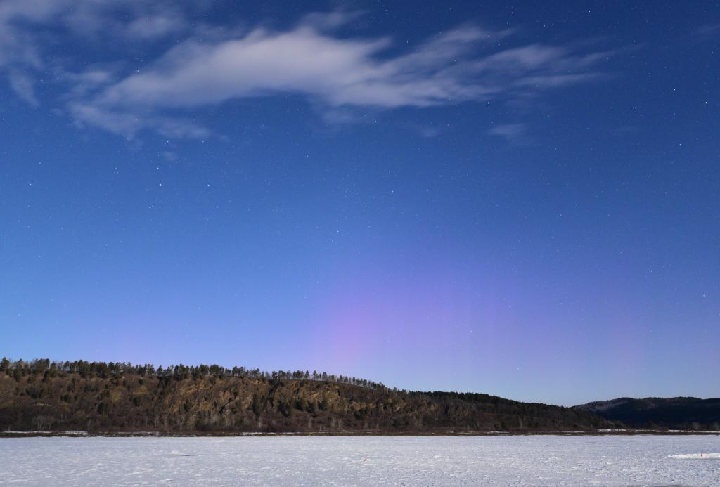 这是4月2日在黑龙江省漠河市北极村拍摄到的“满月极光”。新华社发(郭昕宇摄)