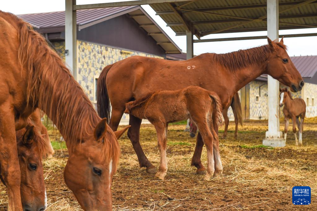 记者站在距离马匹很近的草场上,可以清楚听到马咀嚼草料的“咯吱”声。奥鲁约夫在旁小声道:“繁殖不易,母马一年只怀胎一次,每次也只怀一胎。去年一共出生了约50匹马宝宝,而今年年初就已有17匹出生,这是个好兆头。”