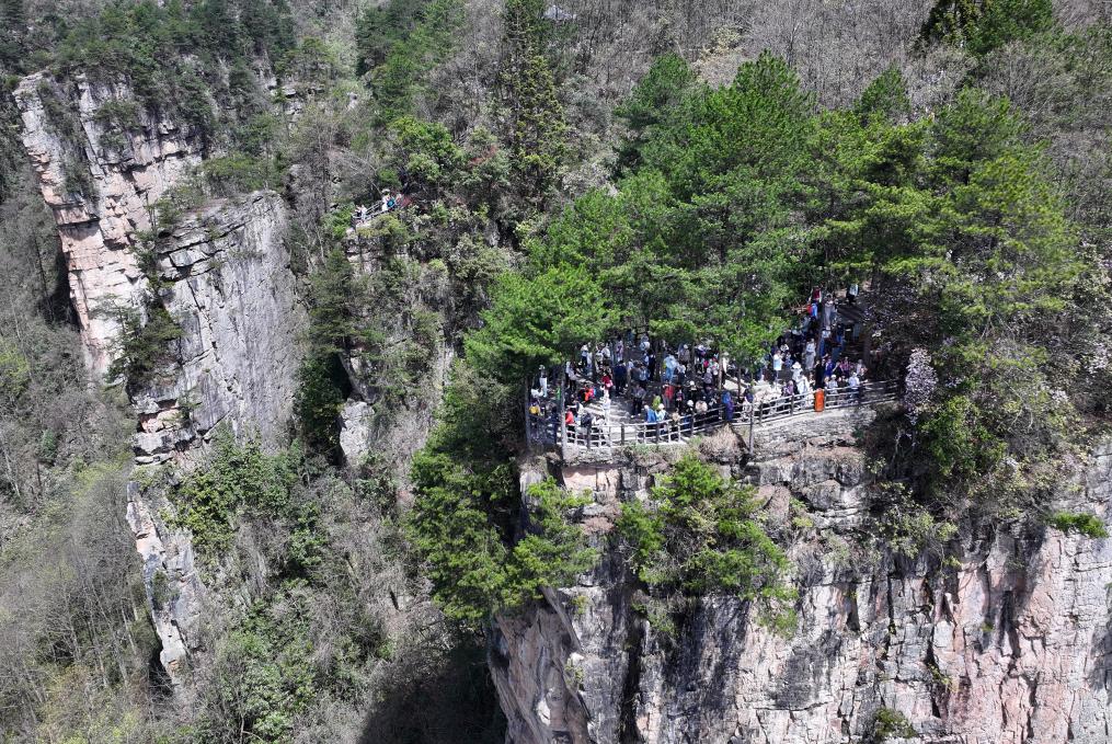 2026年4月4日,游客在张家界国家森林公园天子山景区游玩(无人机照片)。新华社发(吴勇兵摄)