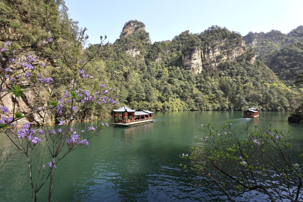 2026年4月4日,游客乘船在张家界宝峰湖景区游玩。新华社发(吴勇兵摄)