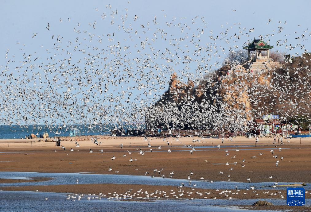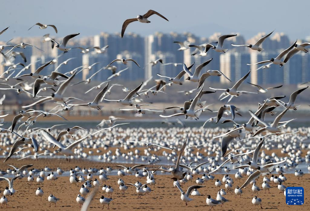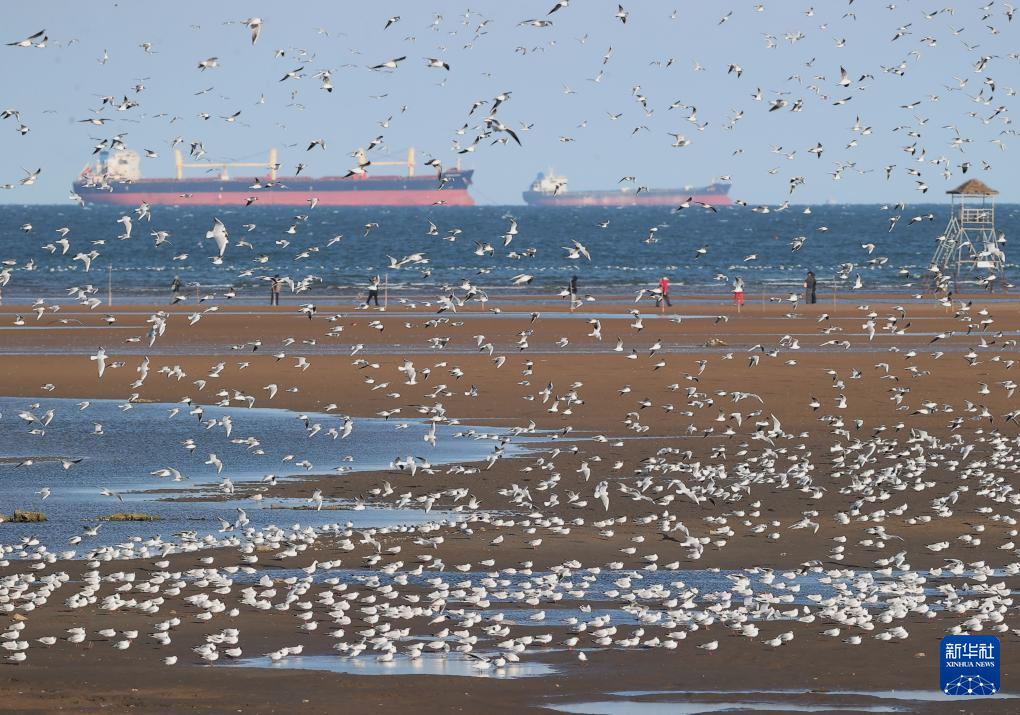 近日,大批海鸥聚集于河北省秦皇岛市北戴河区沿海地区,在蓝天碧海间起舞。