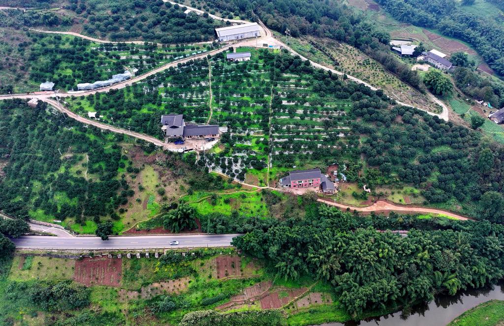 基地负责人贺君丽站在坡地上,随着指尖轻点手机屏幕,纵横交错的管道应声“苏醒”:细密的水雾袅袅溢出,裹挟着淡淡花香漫过整片果园。风过雾散,不过四五分钟,管护便已完成。