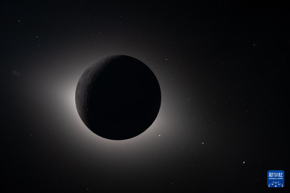 这是4月6日从执行“阿耳忒弥斯2号”载人绕月飞行任务的“猎户座”飞船上拍摄的月球完全遮住太阳的时刻。新华社发(美国国家航空航天局供图)