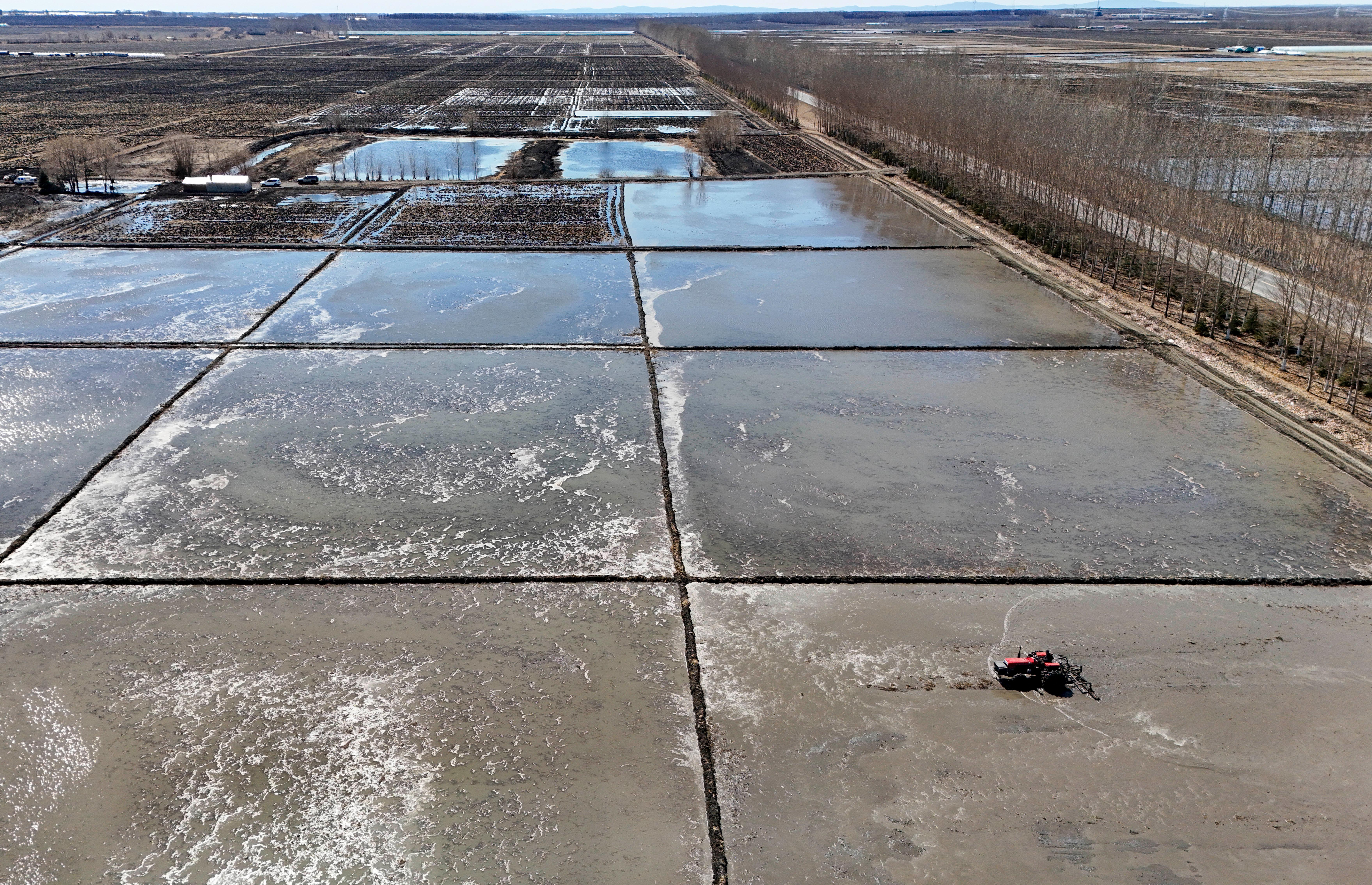 天气渐暖,国家粮食主产区黑龙江垦区各地陆续进入水稻春耕作业期,田间地头呈现出一片繁忙景象。