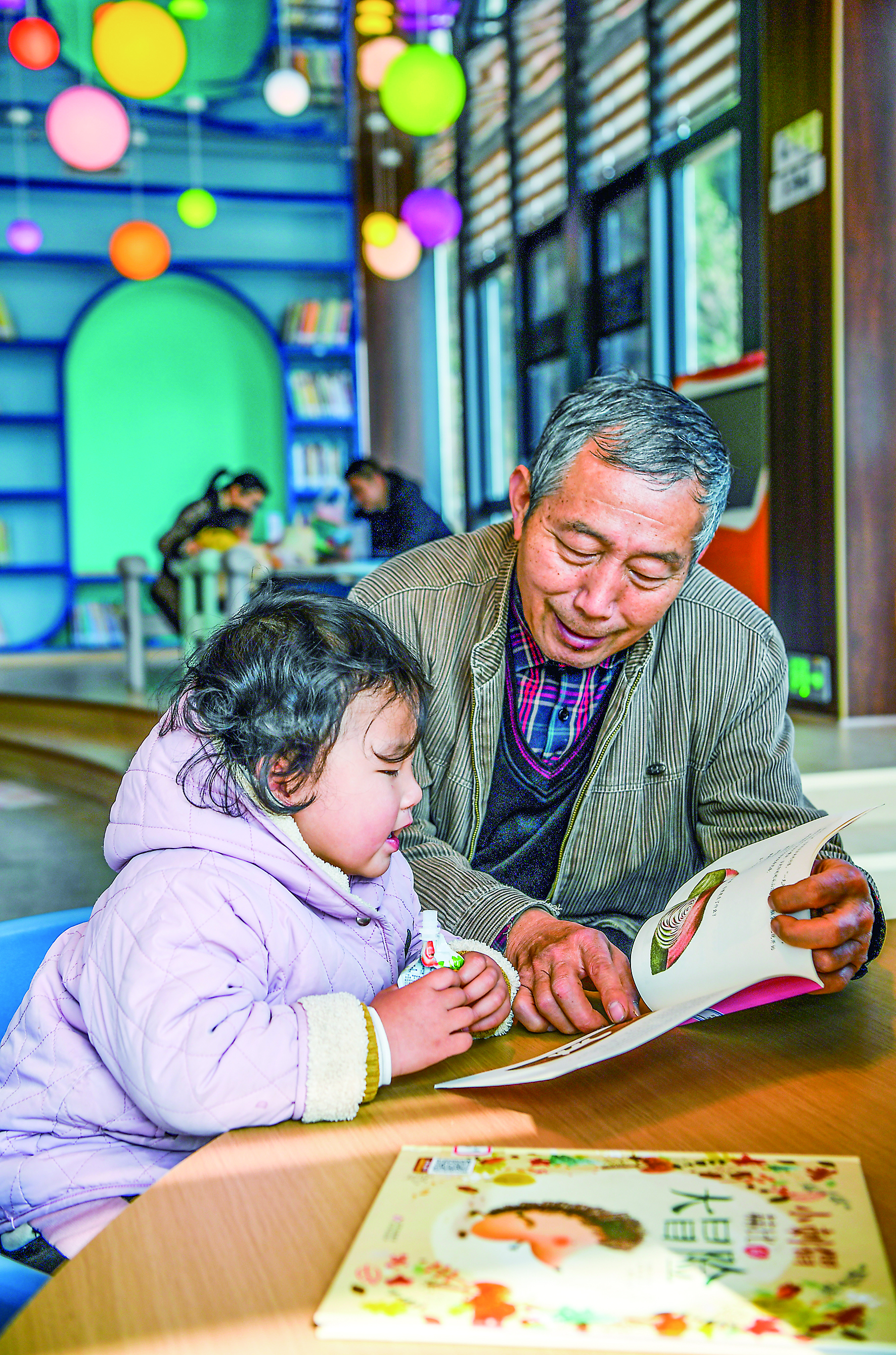 一名家长带着孩子在宜春市袁州区珠泉街道狮子山公园城市书房内阅读。新华社发(周亮摄)