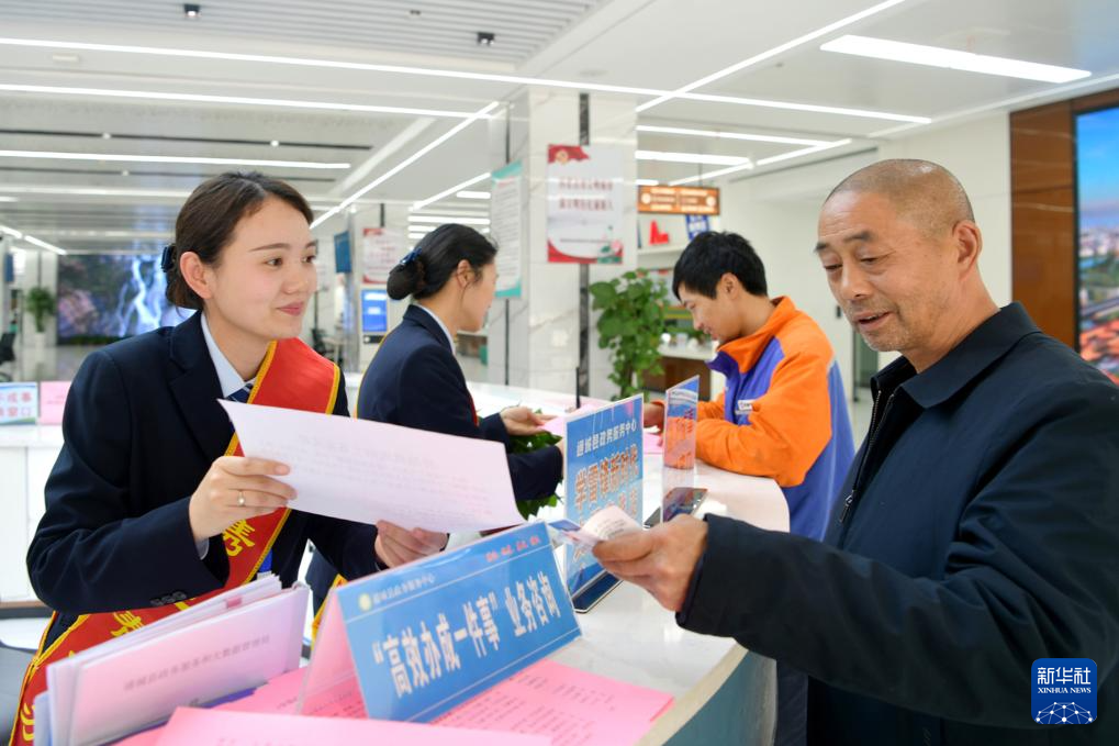 4月10日,在湖北省咸宁市通城县政务服务中心,工作人员为市民提供咨询服务。新华社发(刘建平摄)