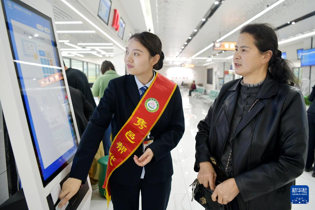4月8日,在湖北省咸宁市通城县政务服务中心,工作人员为市民提供引导服务。新华社发(刘建平摄)