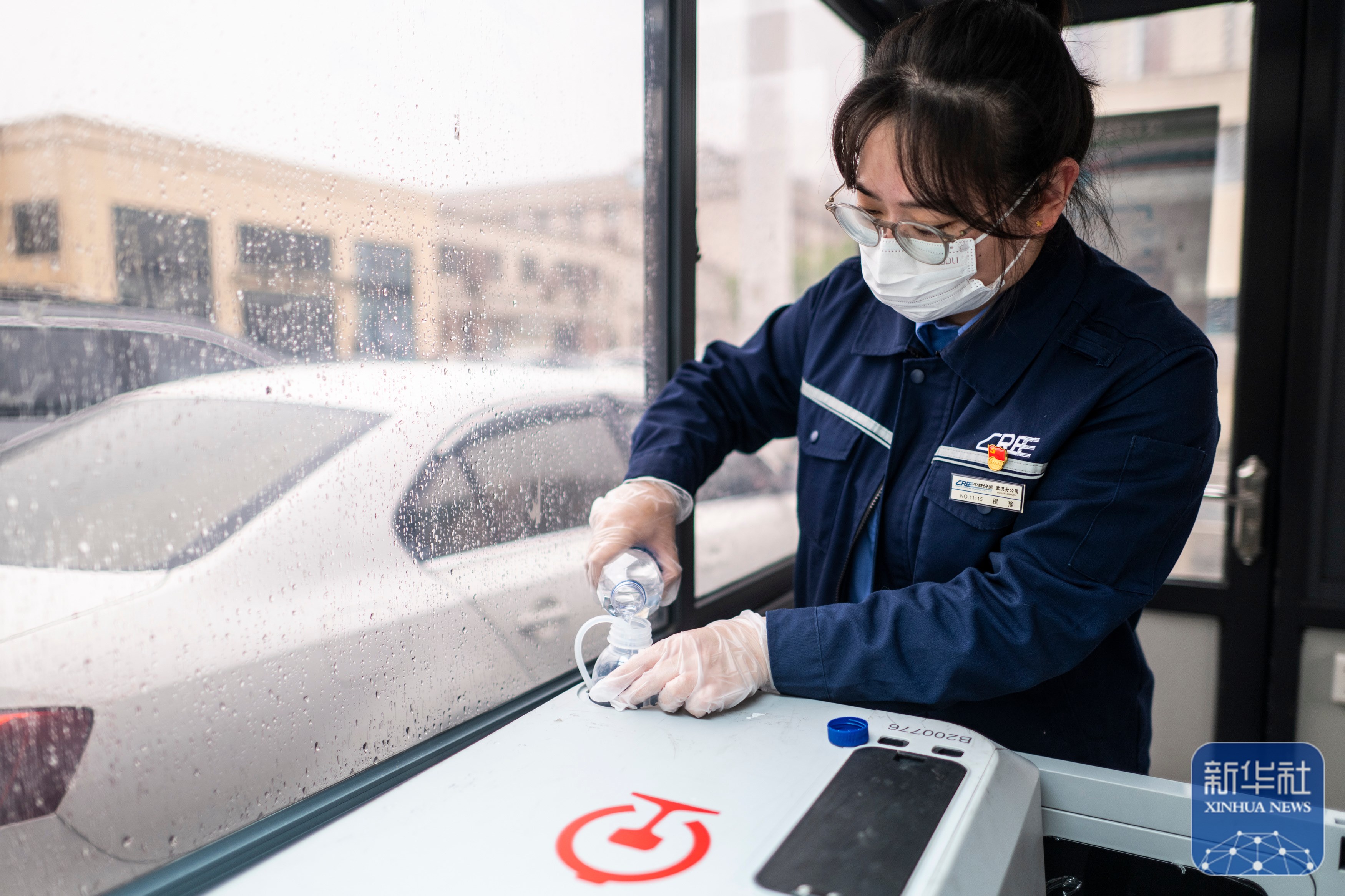 ↑ 4月11日,在湖北省武汉市汉口站,工作人员为专用宠物运输箱添加供宠物饮用的纯净水。