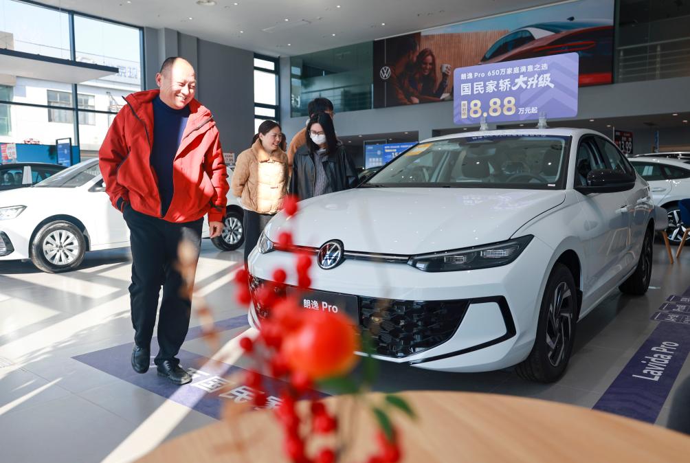 2月21日,消费者在江苏省泰兴市一家汽贸城内的4S店选购车辆。 新华社发(顾继红摄)