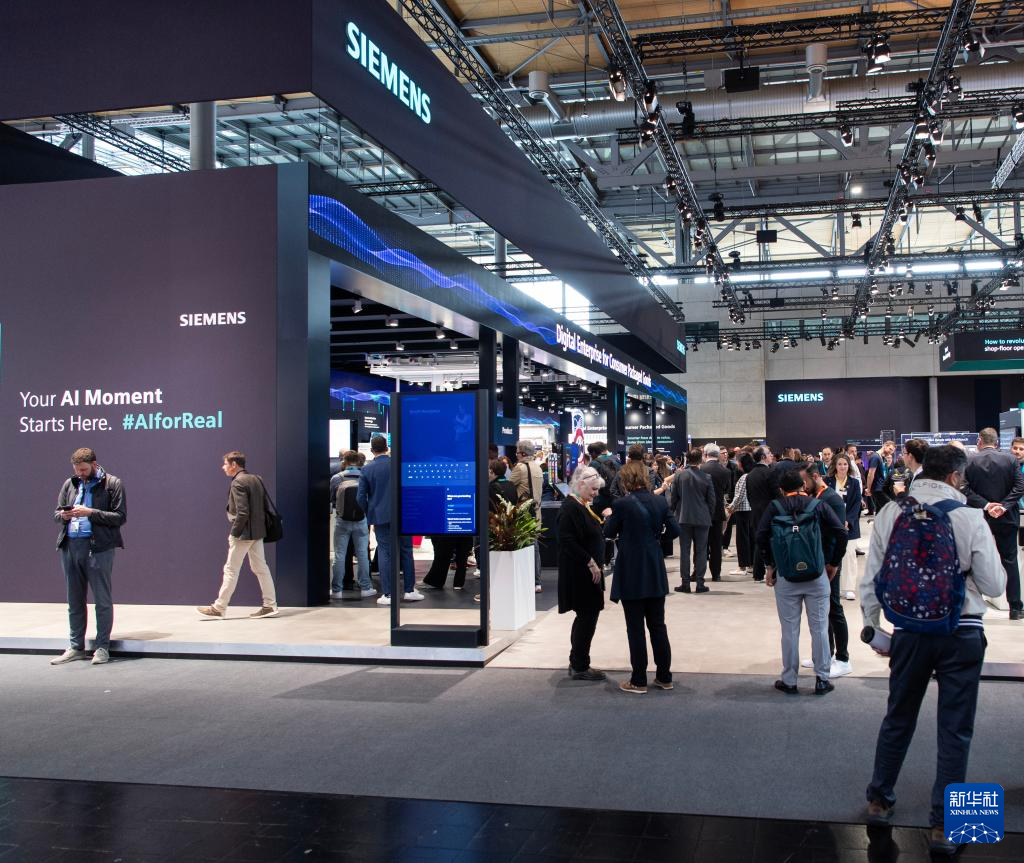 4月20日,人们在德国汉诺威工业博览会西门子展区参观。