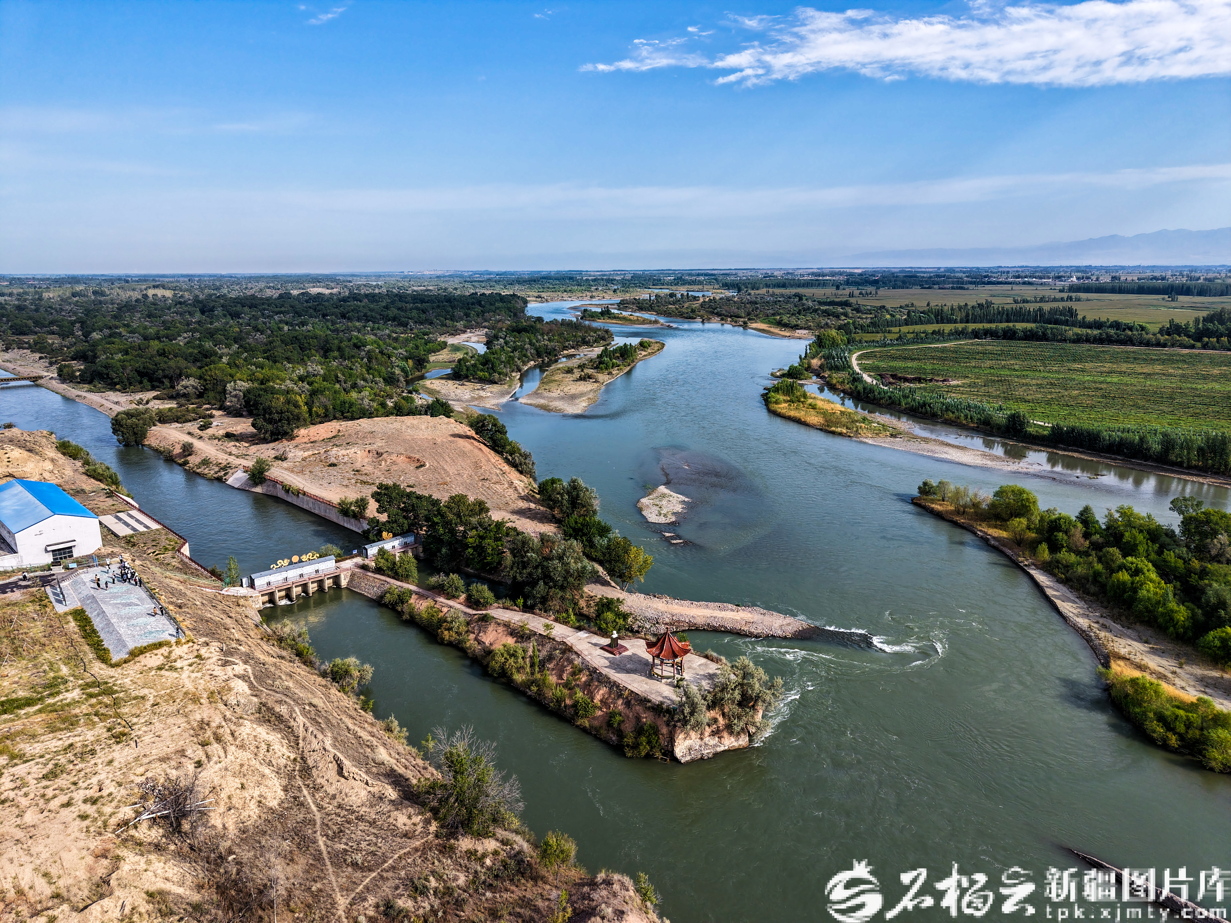 2025年8月8日,航拍位于察布查尔锡伯自治县境内的察布查尔大渠老龙口。石榴云/新疆日报记者 周鹏摄