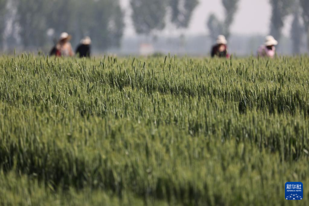 4月25日,河南省焦作市温县祥云镇古贤村农民在麦田里除杂。新华社发(黄福兴摄)