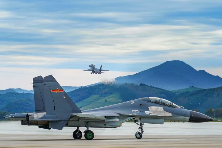 空军哈尔滨飞行学院飞行学员驾驶三代机起飞,奔赴目标空域,开展空战对抗课目训练。(贾子华摄)