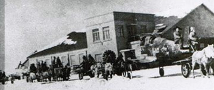马车拉飞机运输队启程。(空军哈尔滨飞行学院供图 资料图片)