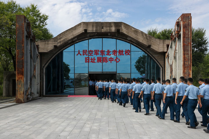 空军哈尔滨飞行学院连续多年组织新期班飞行学员前往人民空军东北老航校旧址开展“寻根之旅”现地教学,铸牢飞行学员东北老航校传人的思想烙印。张博文 摄