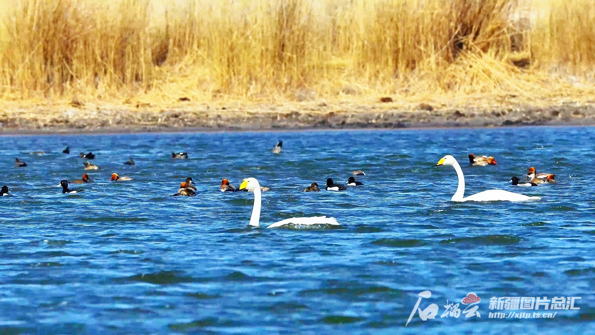 5月4日,在阿勒泰科克苏湿地国家级自然保护区,随处可见成群的候鸟在水中嬉戏。库奋·尼合买提摄