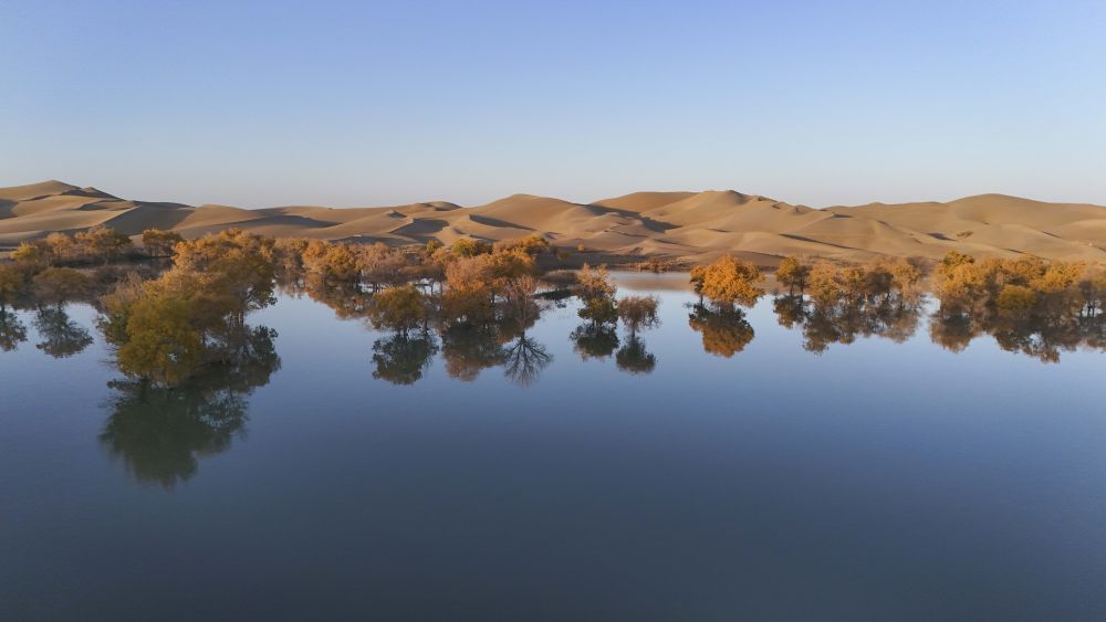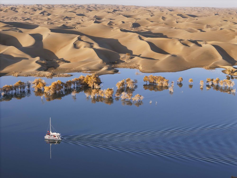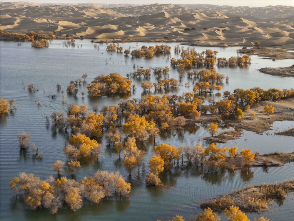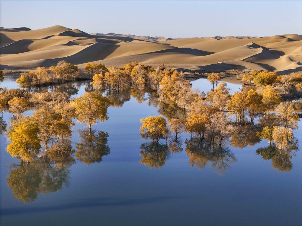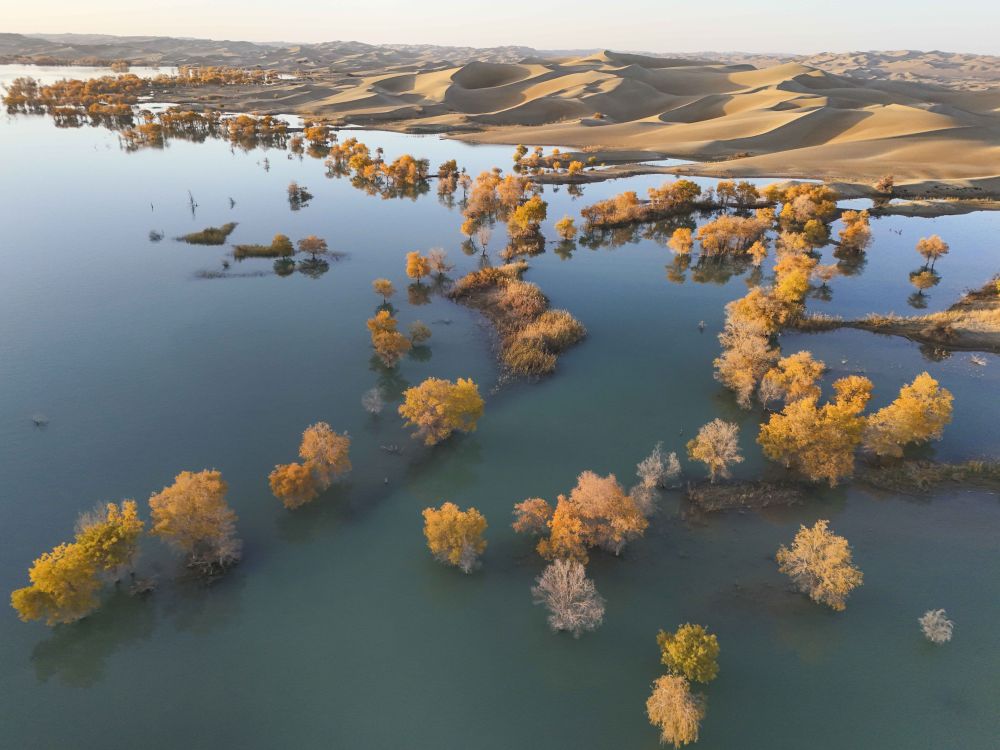 新疆塔里木河流域分布着上千万亩胡杨林,金秋时节,层林尽染。葫芦岛景区地处塔里木河下游、塔克拉玛干沙漠东缘,这里集沙漠、湖泊、胡杨于一体,美不胜收,吸引着天南海北的游客慕名而来。