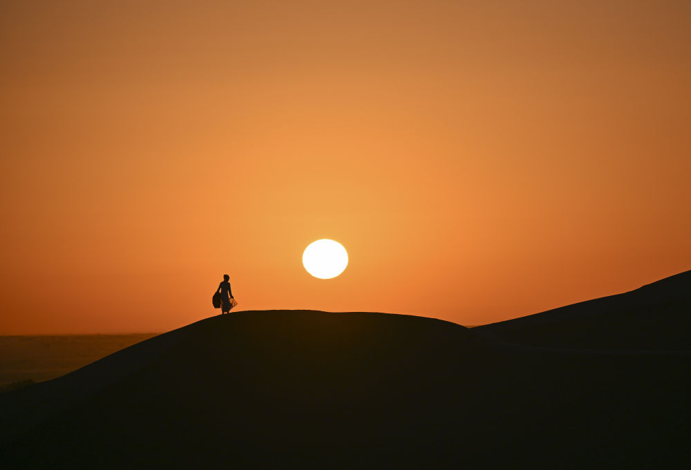 游客在新疆葫芦岛景区欣赏大漠日出(10月26日摄)。 新华社记者 胡虎虎 摄