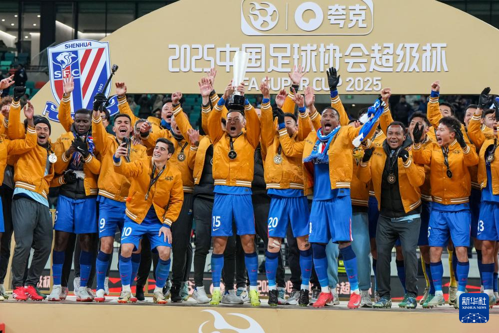 当日,在江苏昆山举行的2025中国足球协会超级杯决赛中,上海申花队3比2战胜上海海港队,夺得冠军。