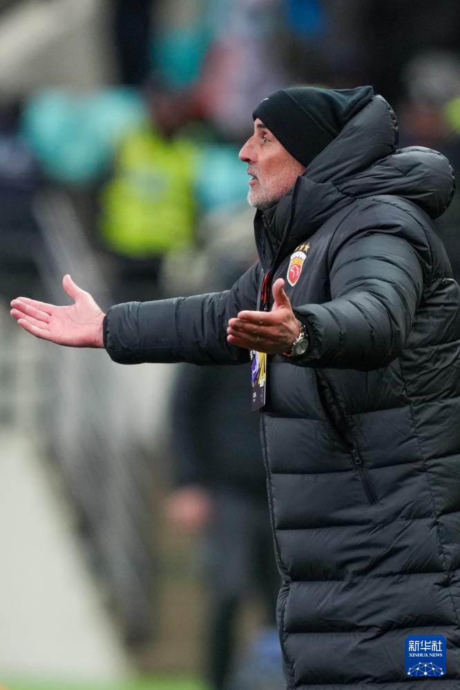 2月7日,上海海港队主教练穆斯卡特在场边指挥。