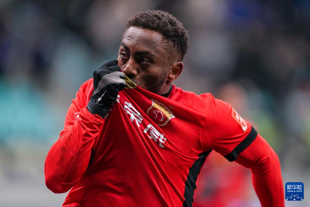 2月7日,上海海港队球员加布里埃尔庆祝进球。