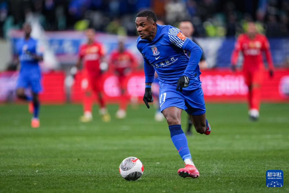 2月7日,上海申花队球员绍洛·米内罗在比赛中带球推进。