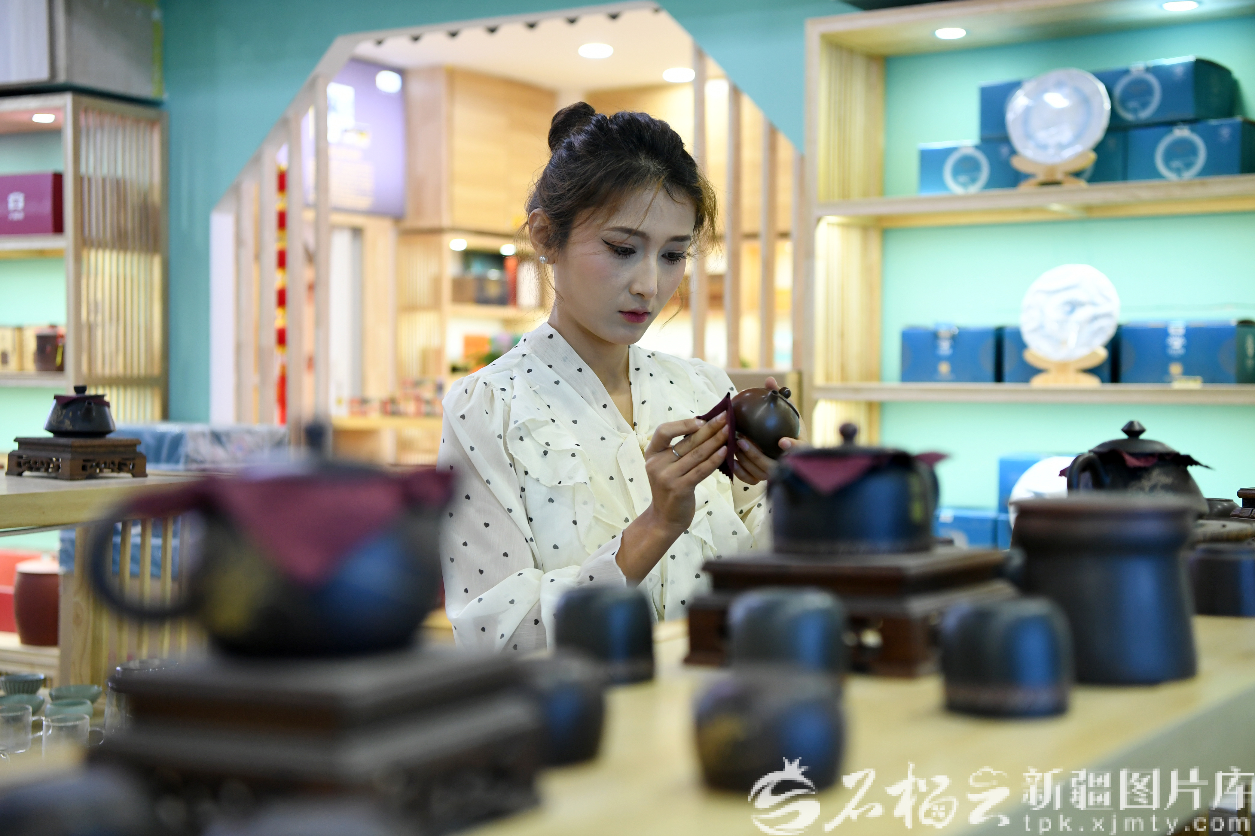 11月30日,夏黑班木在乌鲁木齐市华凌茶城一家茶叶专卖店挑选茶具。