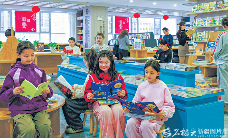 11月30日,学生在乌鲁木齐市新华书店西北路书咖空间阅读,乐享假日好时光。