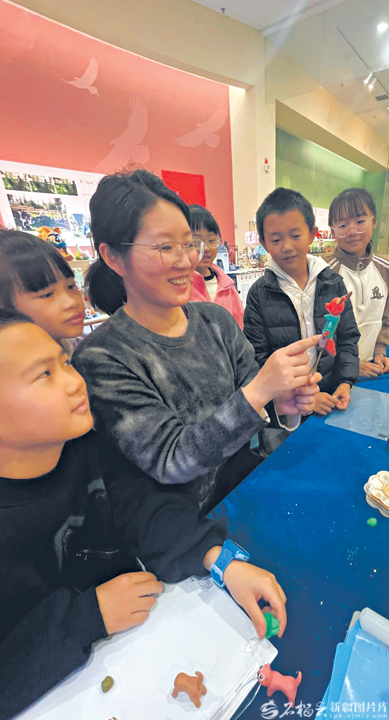 12月2日,乌鲁木齐市博物馆非物质文化遗产展厅,孩子们学习面塑制作,感受来自指尖上的传统文化魅力。