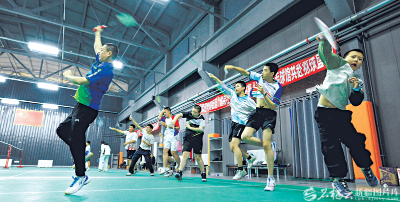 2月2日,乌鲁木齐市米东区飞羽羽毛球馆,学生在教练的带领下学习打羽毛球,享受运动带来的快乐。