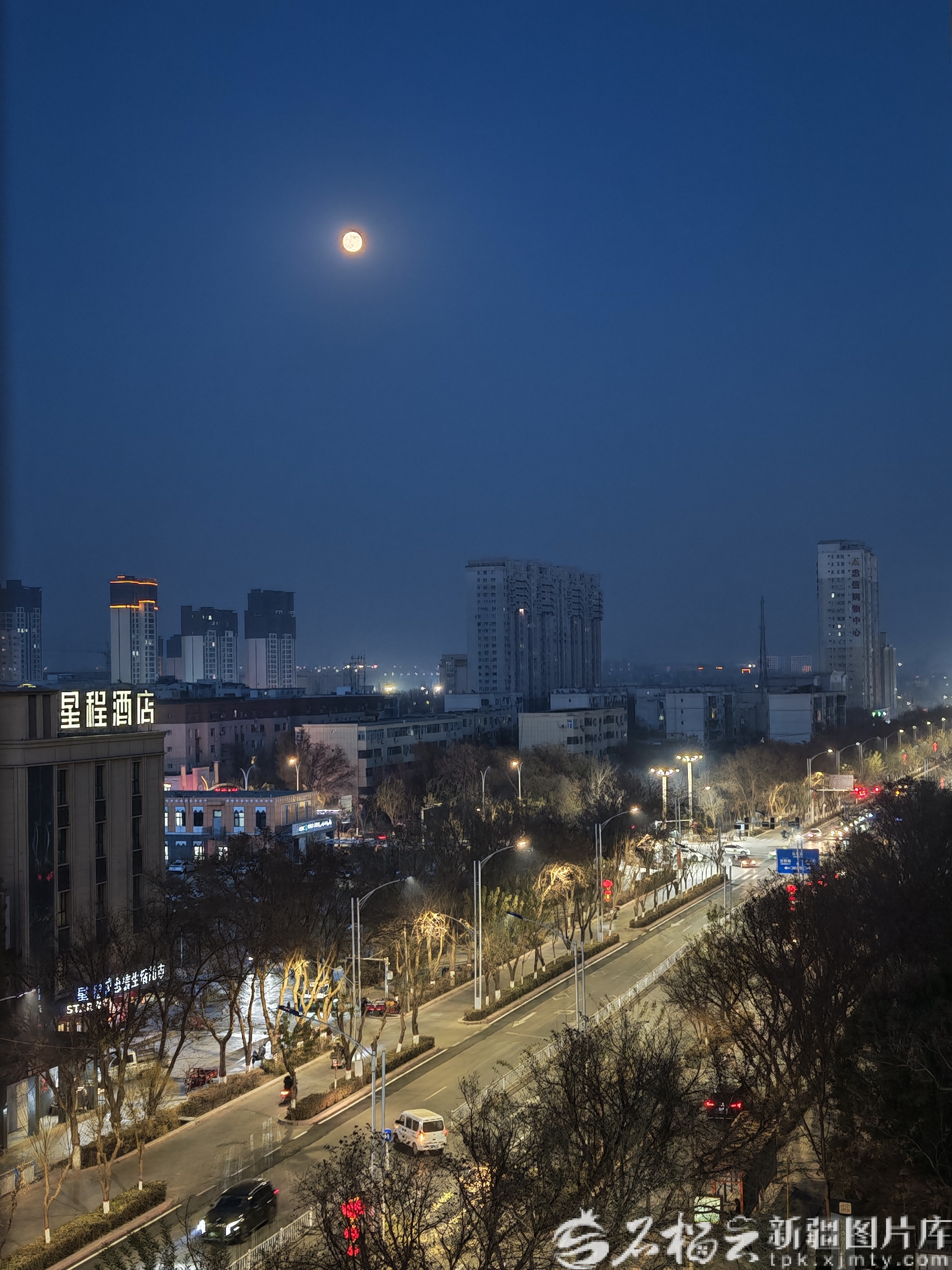 12月4日晚,一轮明月挂在吐鲁番市上空。