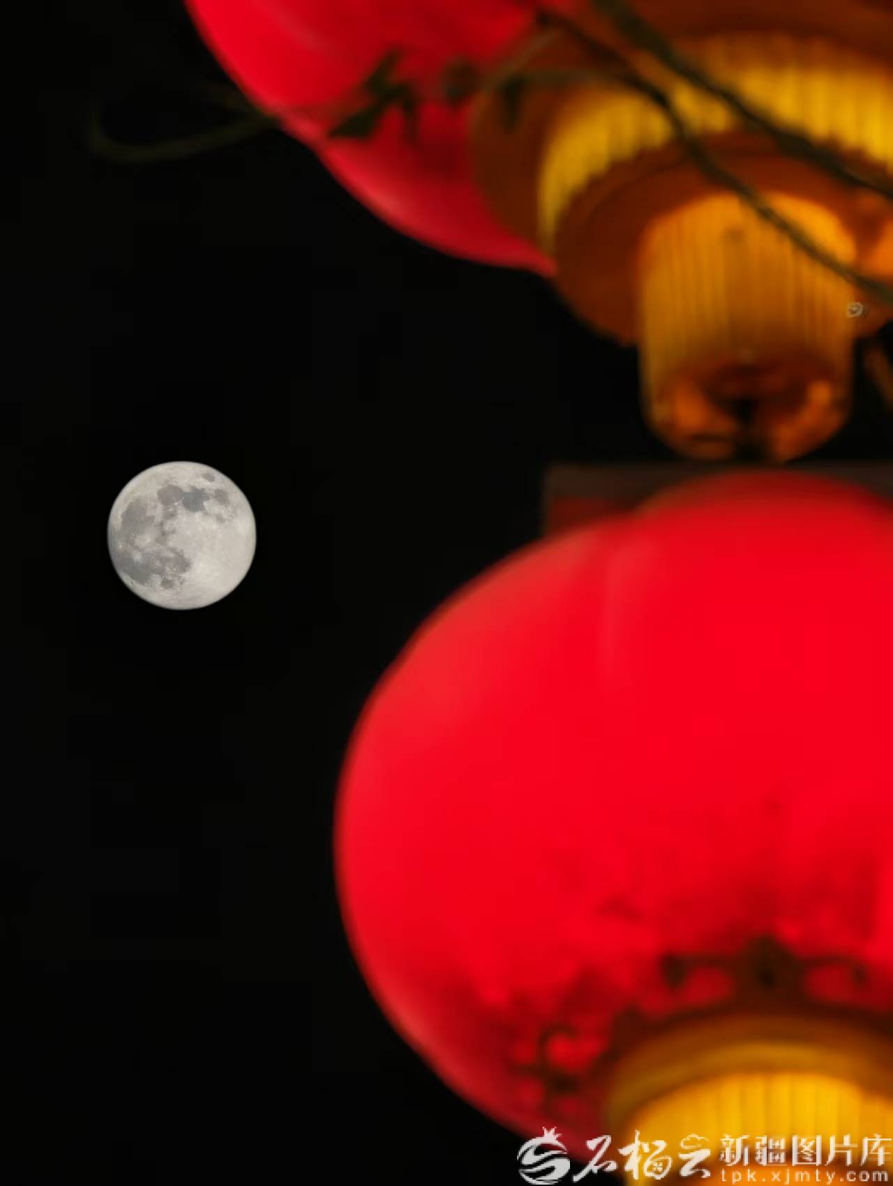 12月4日晚,“超级月亮”与红灯笼相呼应。