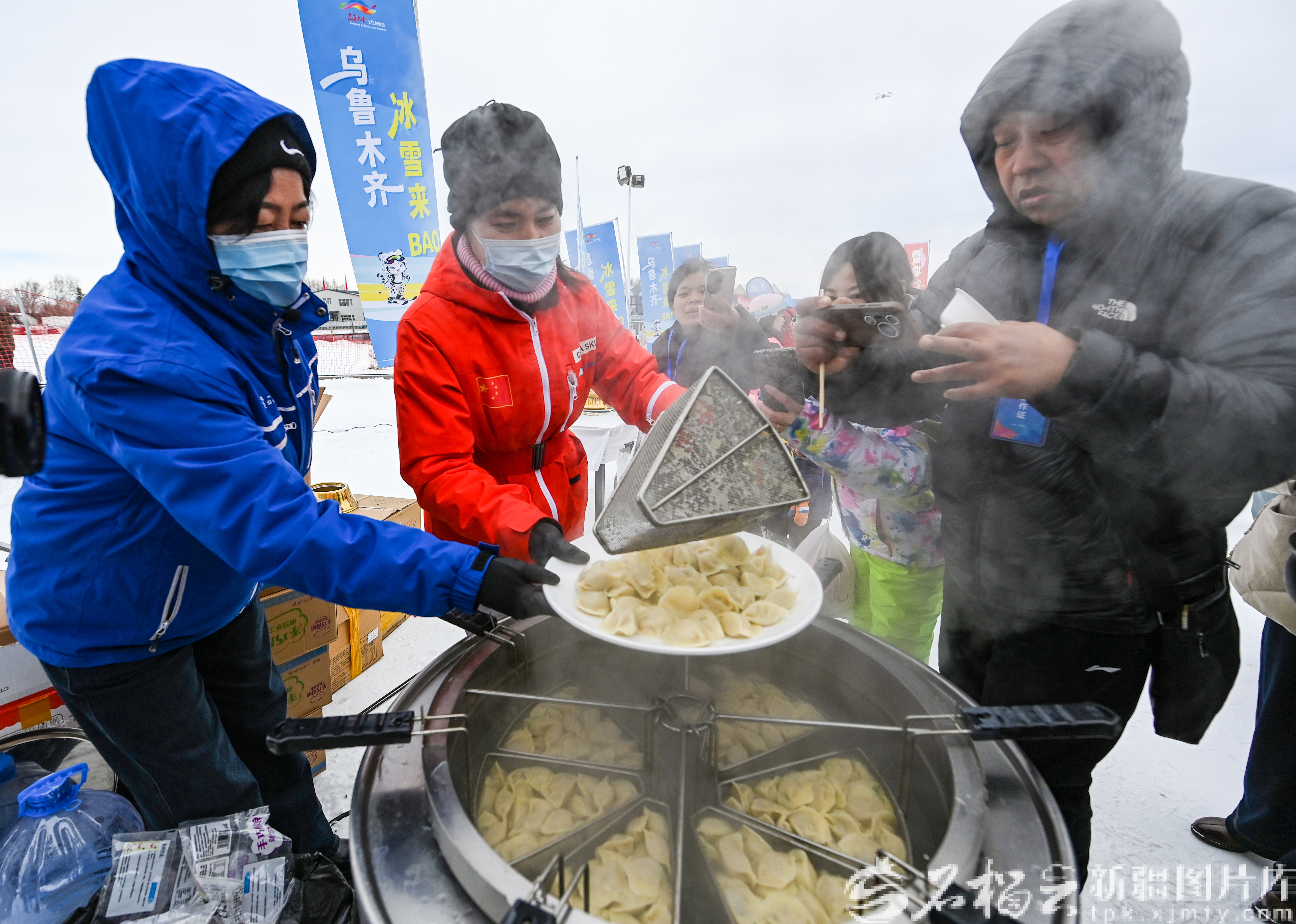 12月21日,位于乌鲁木齐县的白云国际滑雪场,工作人员正在煮饺子。