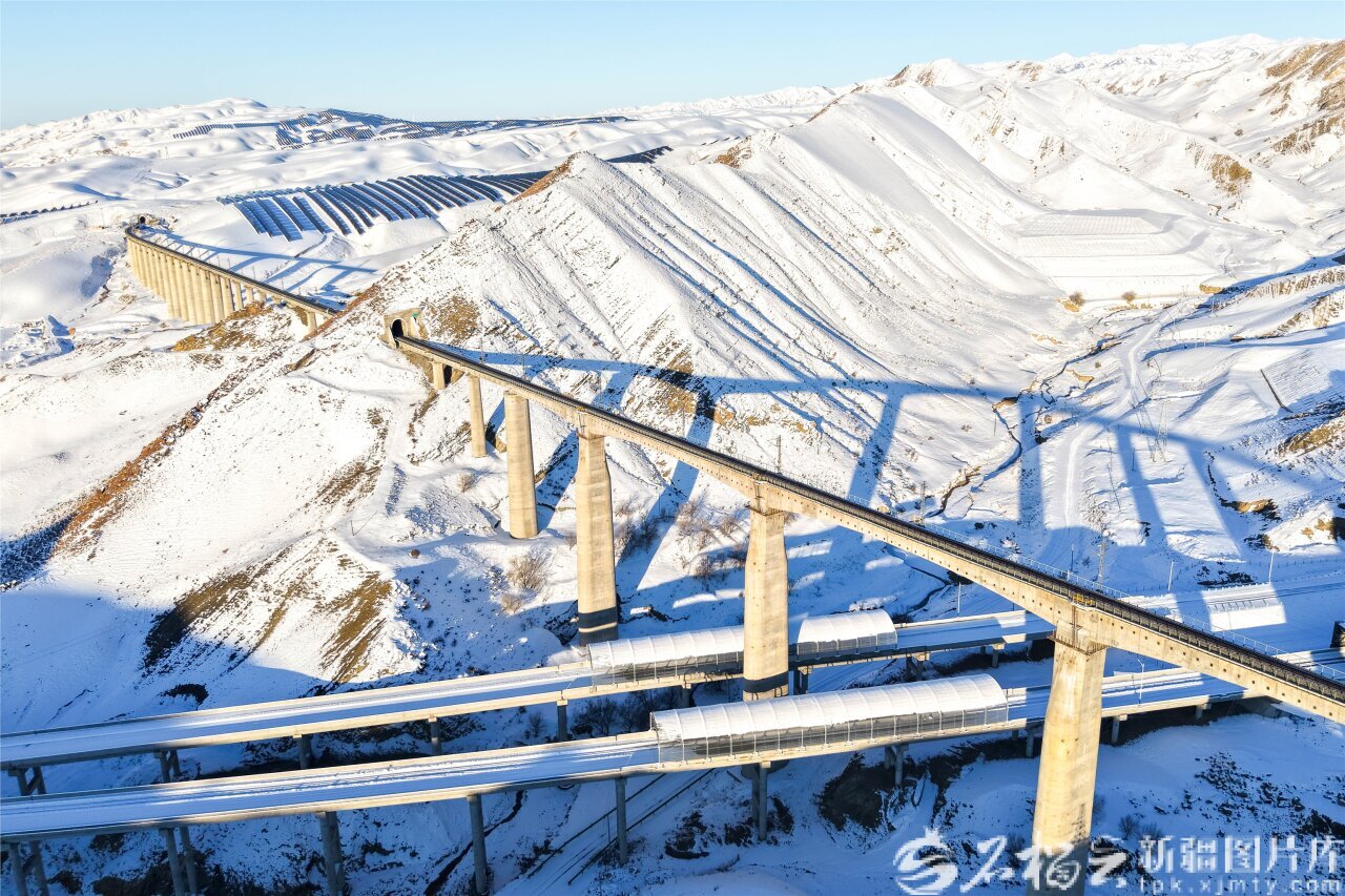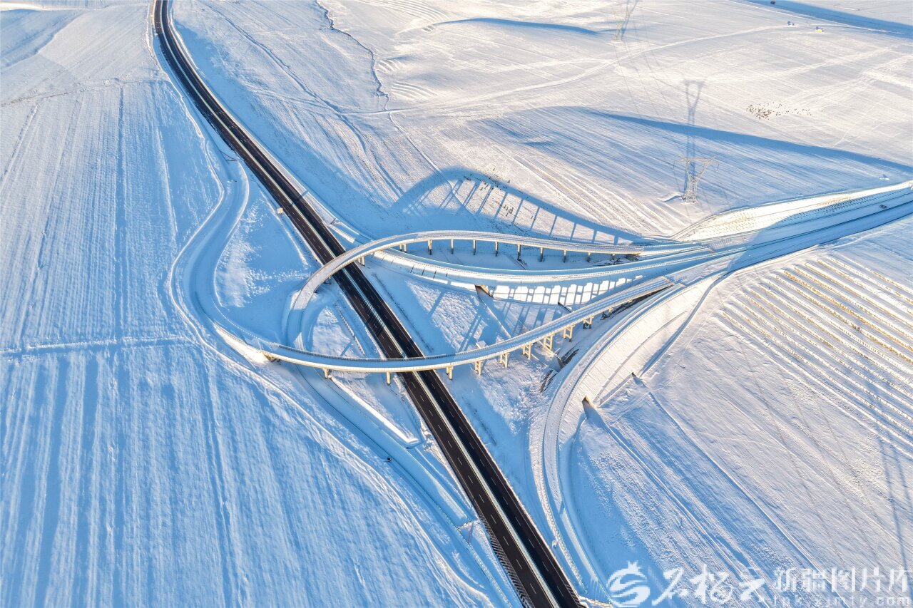 12月23日,G577精河至伊宁县公路苏布台枢纽纵横交错的路网轮廓清晰可见。孙振嵩 摄