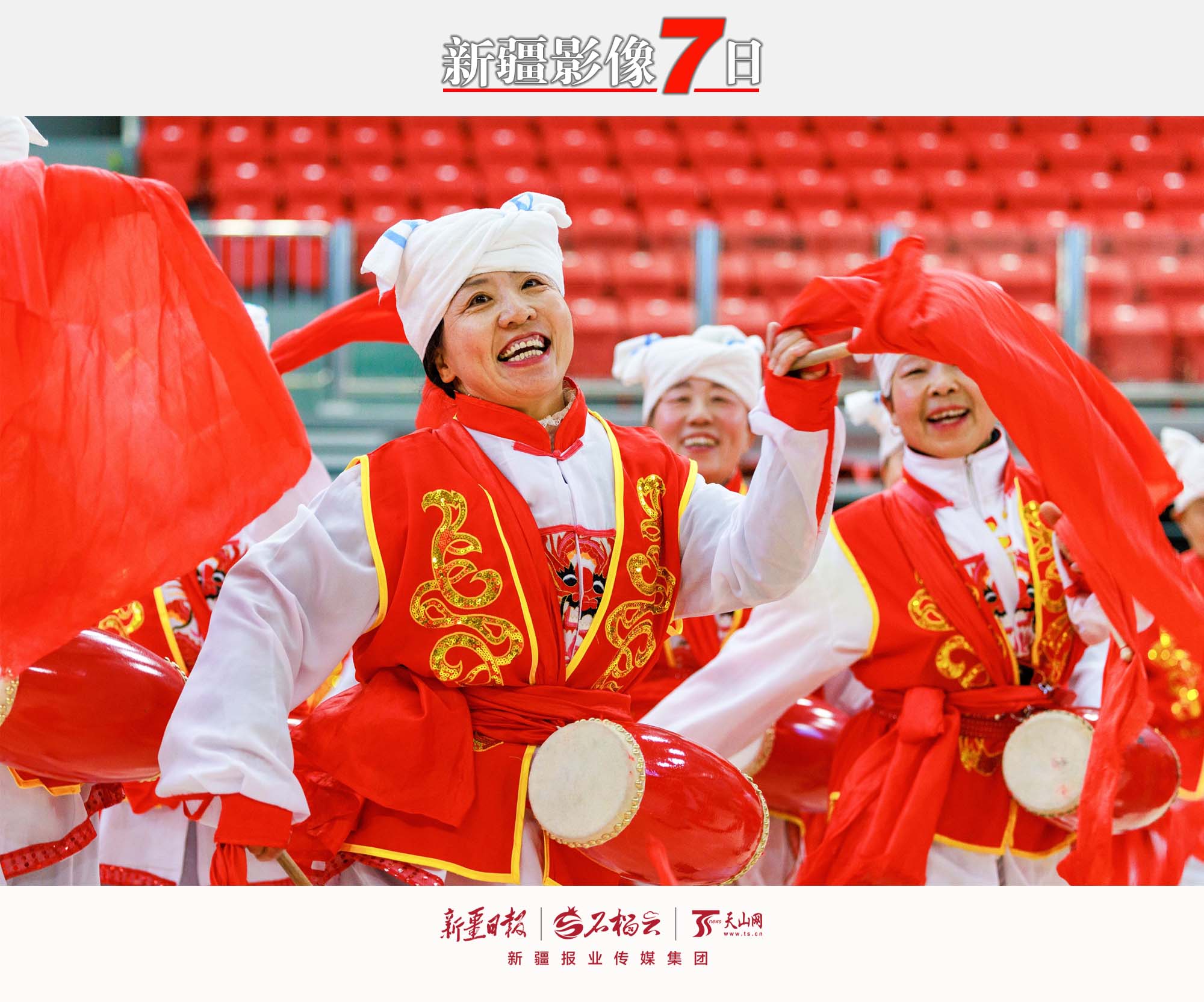 12月24日,社火队在表演打腰鼓。当日,乌鲁木齐经济技术开发区(头屯河区)举行第二届“打起手鼓舞起龙”社火集中彩排活动,点燃广大干部群众参与冬季文化活动的热情。连日来,该区各社火表演队加紧排练舞龙、耍狮、秧歌等节目,准备在新年为市民带来一场精彩纷呈的文化盛宴。孙振嵩 摄