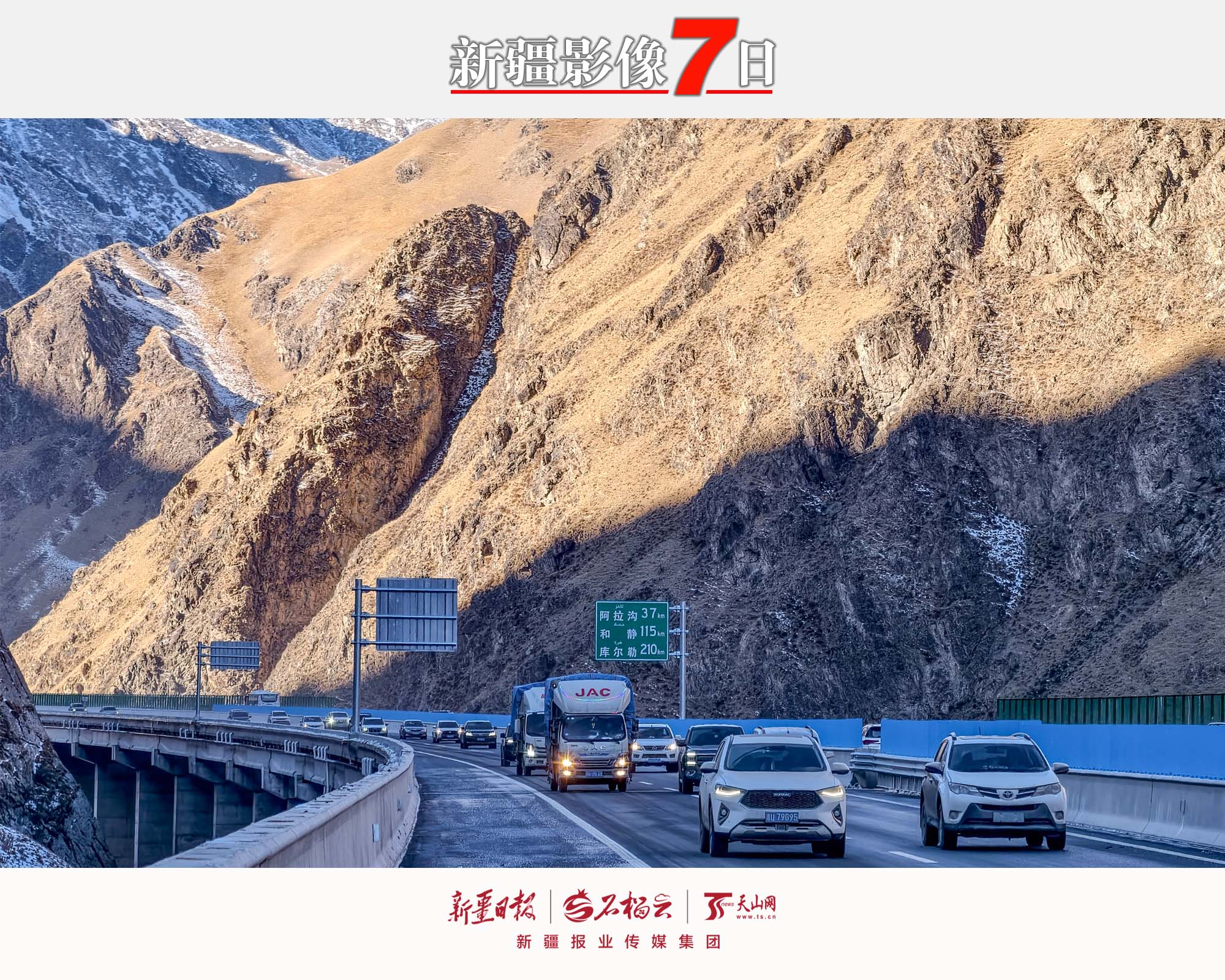 12月26日11时30分起,G0711乌鲁木齐至尉犁高速公路面向社会车辆开展通行体验活动,并将于2026年1月1日0时起试运营。这条串联南北疆的交通大动脉,把乌鲁木齐市至尉犁县的驾车时长缩短一半,成为南北疆之间最便捷的高速公路通道。12月26日,车辆行驶在乌尉高速公路后峡2号大桥。石榴云/新疆日报记者 汤永 摄