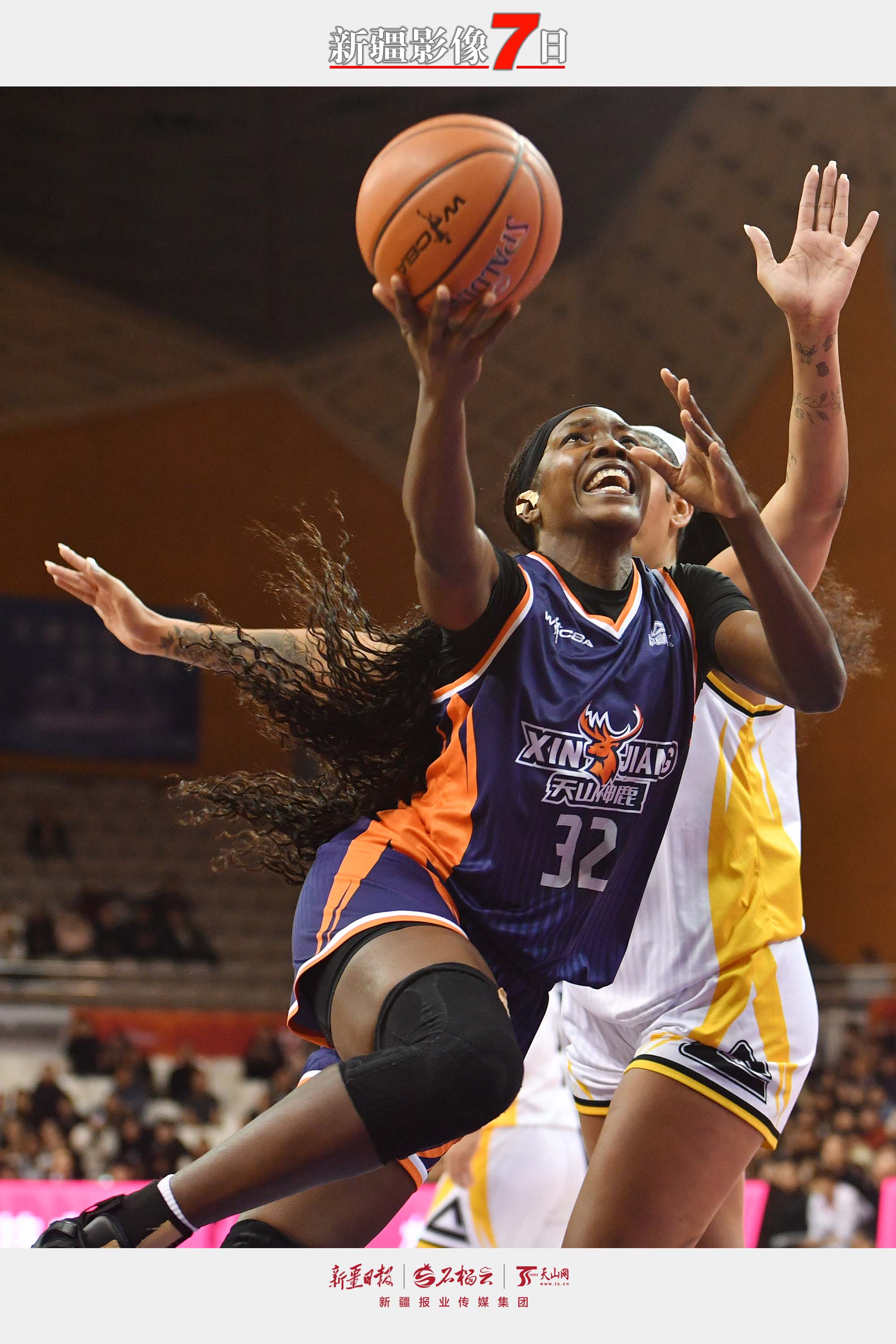 新疆女篮队员强攻上篮