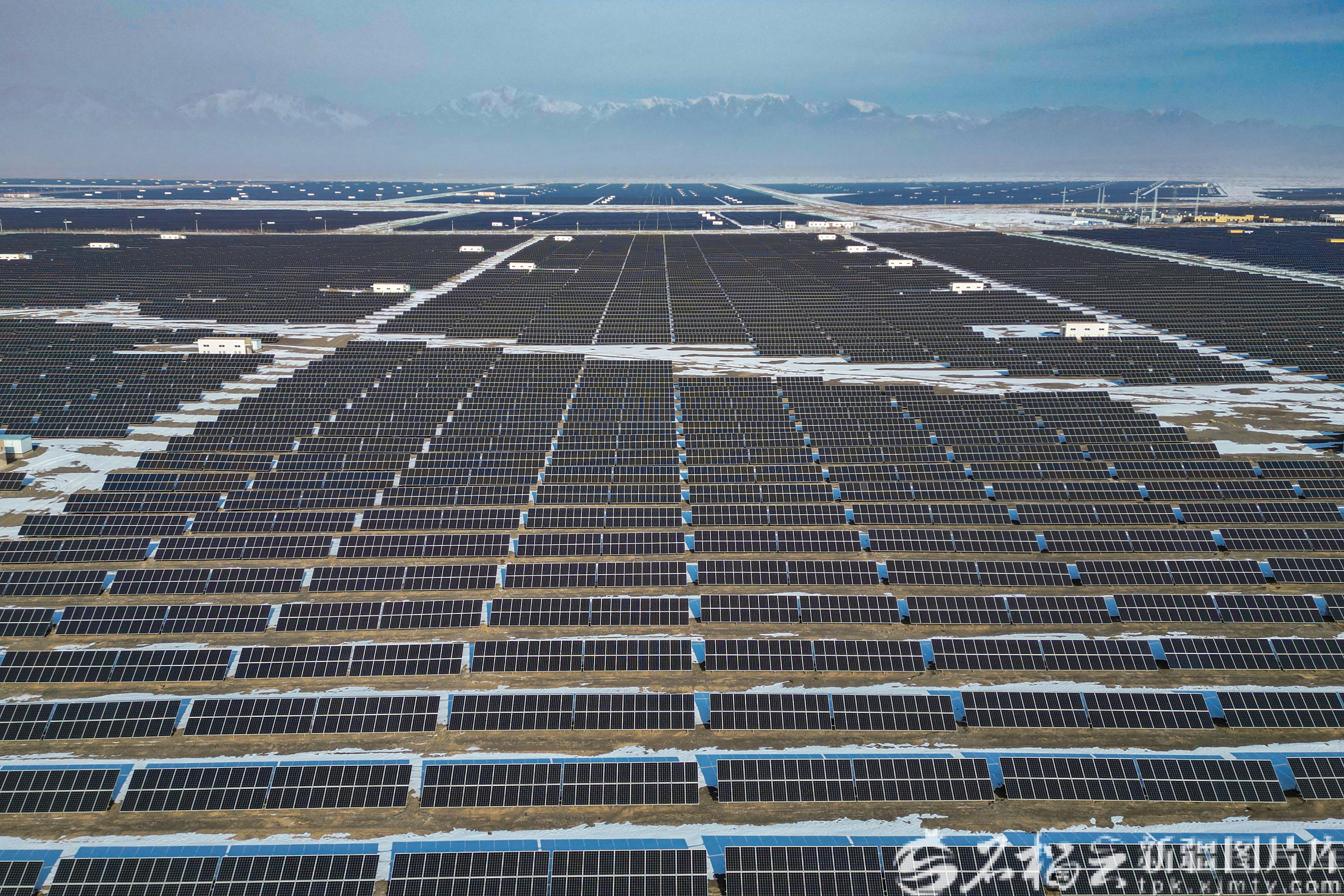 1月12日,在哈密市伊州区北部拍摄的哈密石城子光伏产业园一角。