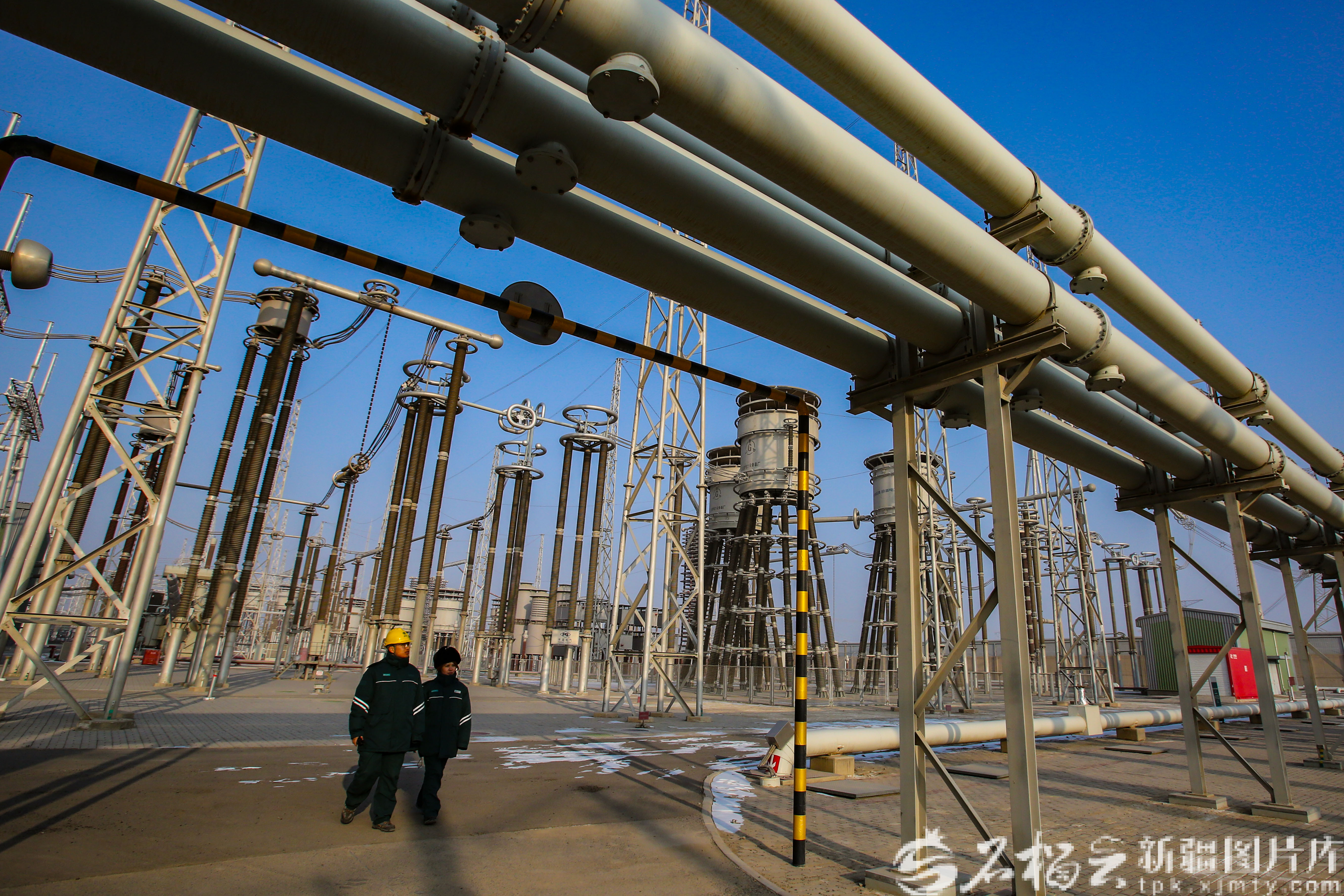1月12日,国网新疆超高压分公司员工在天山换流站开展站内设备巡视工作。