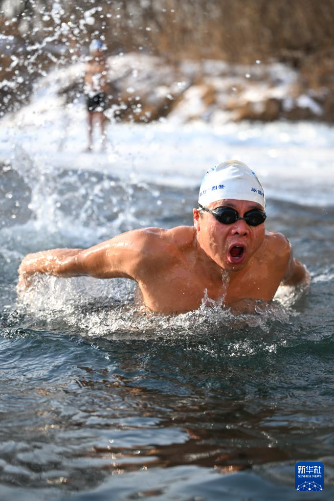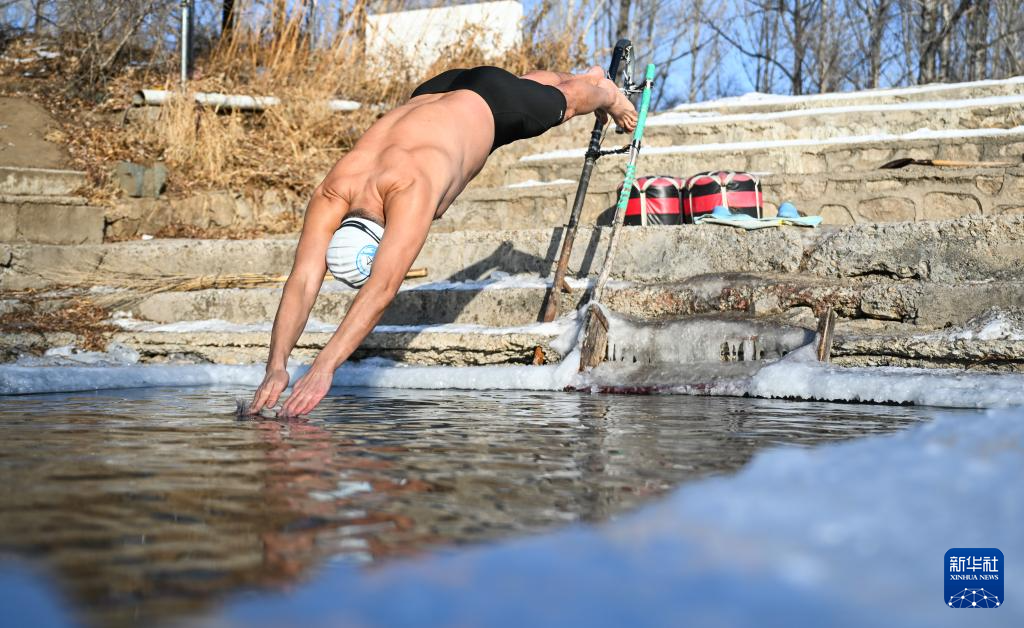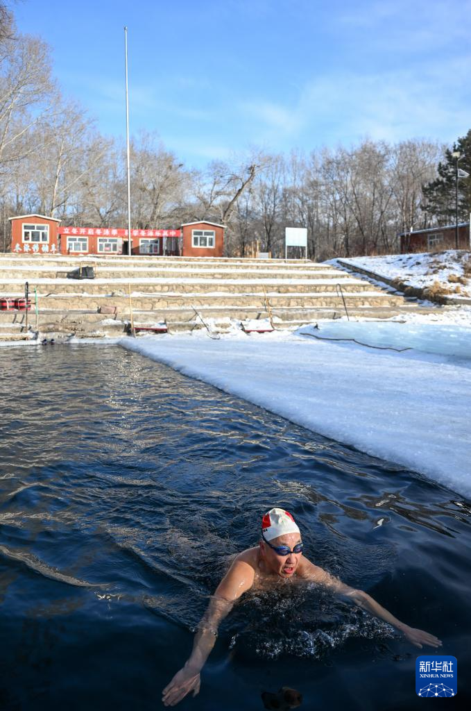 1月18日,市民在内蒙古呼伦贝尔扎兰屯市冬泳基地游泳。新华社记者 贝赫 摄