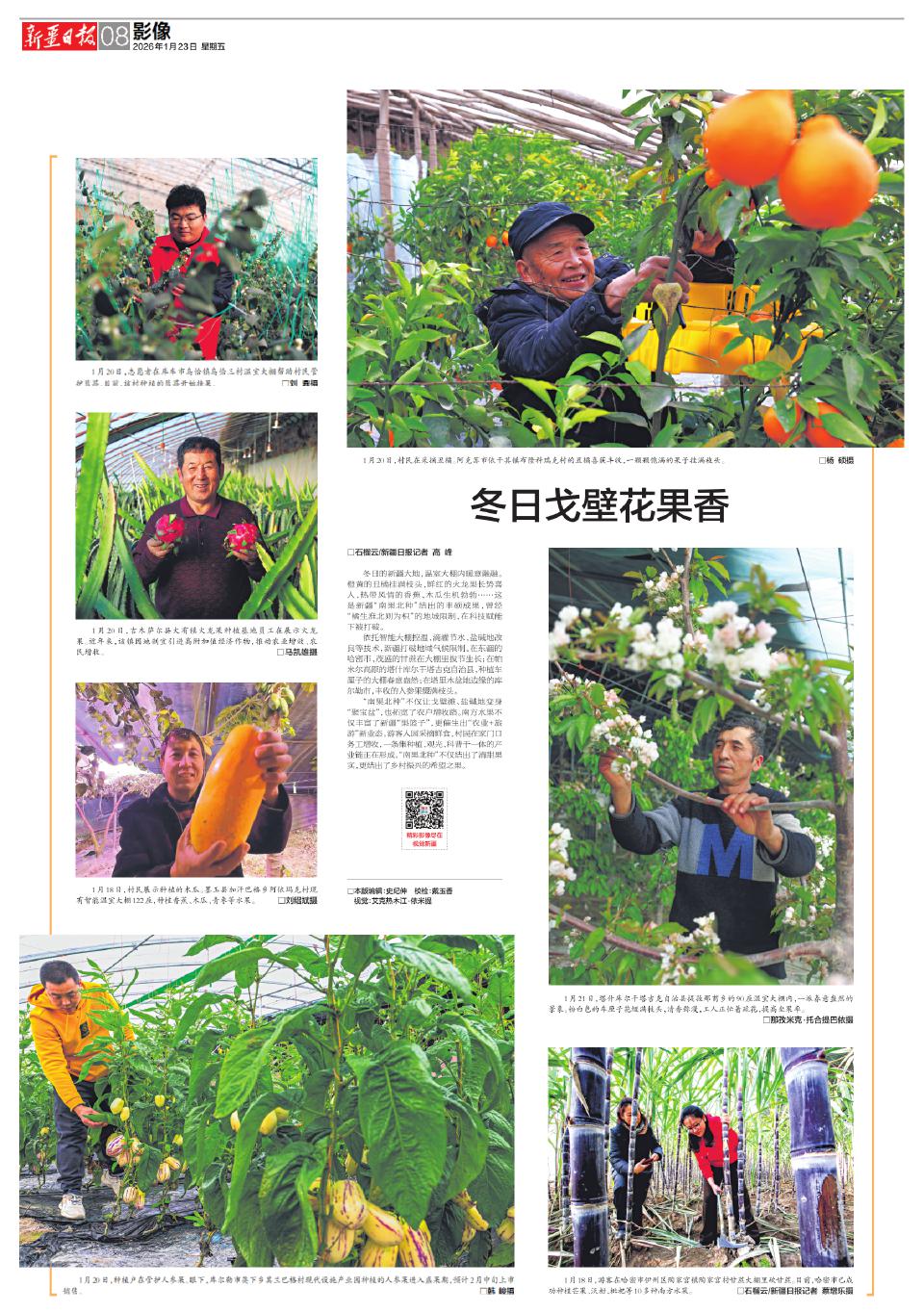 冬日的新疆大地,温室大棚内暖意融融。橙黄的丑橘挂满枝头,鲜红的火龙果长势喜人,热带风情的香蕉、木瓜生机勃勃……这是新疆“南果北种”结出的丰硕成果,曾经“橘生淮北则为枳”的地域限制,在科技赋能下被打破。
