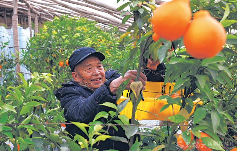 1月20日,村民在采摘丑橘。阿克苏市依干其镇布隆科瑞克村的丑橘喜获丰收,一颗颗饱满的果子挂满枝头。□杨硕摄